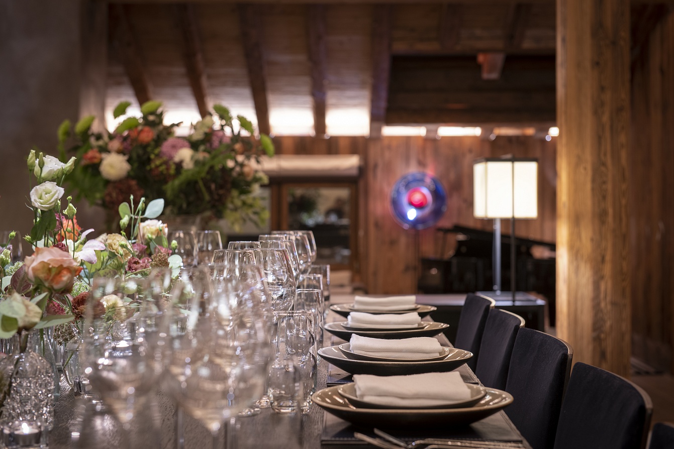 Your private chef awaits to tantalize your taste buds with the finest cuisine, using locally sourced ingredients. Enjoy breathtaking views of the Matterhorn as you savor delectable meals. The open-plan living and dining area on the top floor is a dynamic space with vaulted ceilings, a grand piano, and large balconies offering the best views of the Matterhorn in Zermatt. The chalet also features a TV lounge with a large LCD screen, Apple TV, Sky, and a surround sound system.