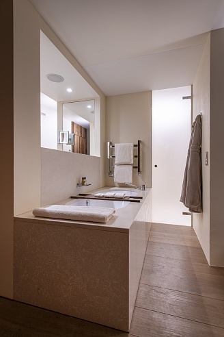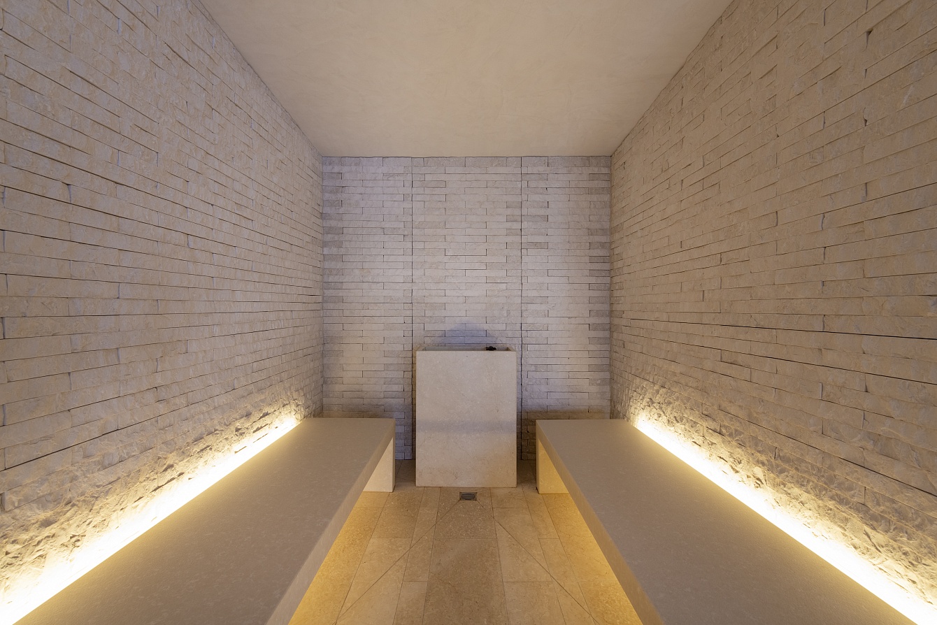 The ground floor spa is a haven of serenity with a central water feature, sauna, Hammam, massage room, and a hot tub on the terrace. The massaging bubbles of the hot tub soothe your body, providing the ultimate relaxation.