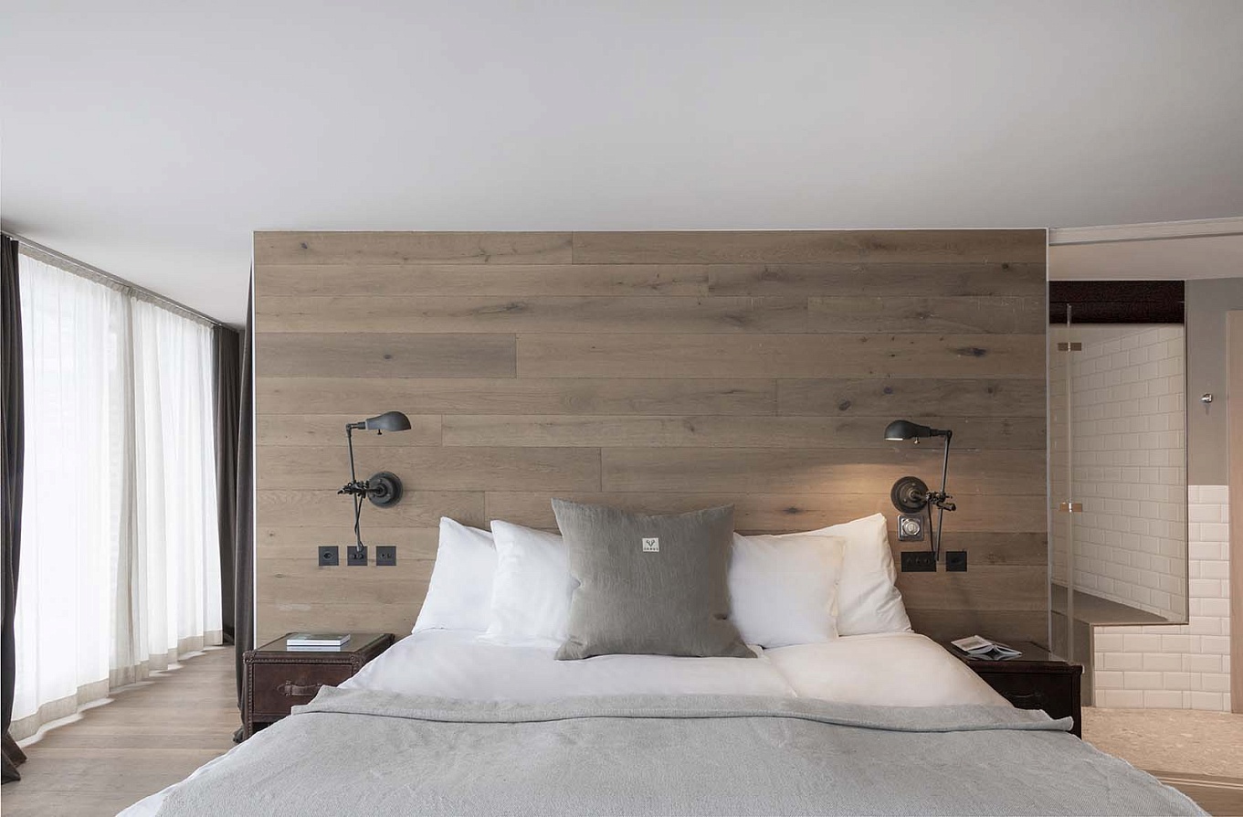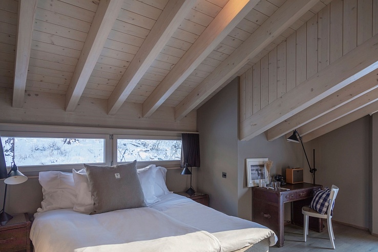 Floor-to-ceiling windows frame Zermatt’s twinkling lights and the majestic Matterhorn—views made even more spectacular from your private outdoor hot tub. The chalet boasts its own gym, sauna, and steam room, plus privileged access to the five-star Mountain Ashram Spa at Cervo. Interiors masterfully blend local stone and vintage wood with minimalist white-clad ceilings, subtle tartan accents, and the plush ambience of a modern hunter’s lodge, all centred around a crackling open fire.