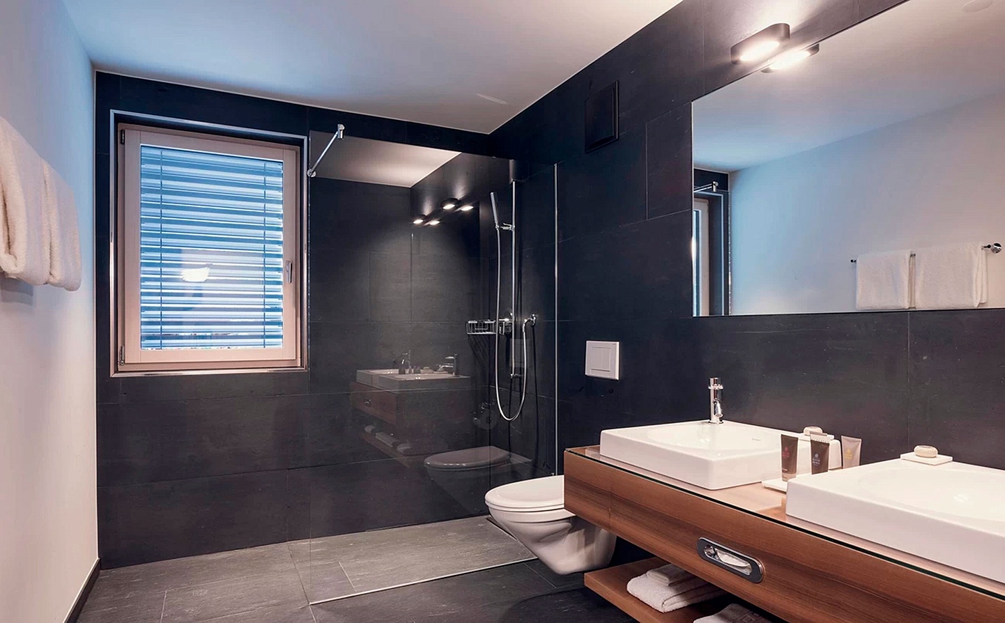 - Alpinist S (22sqm): King/Twin bedroom and bathroom with walk-in shower.