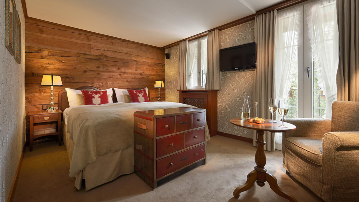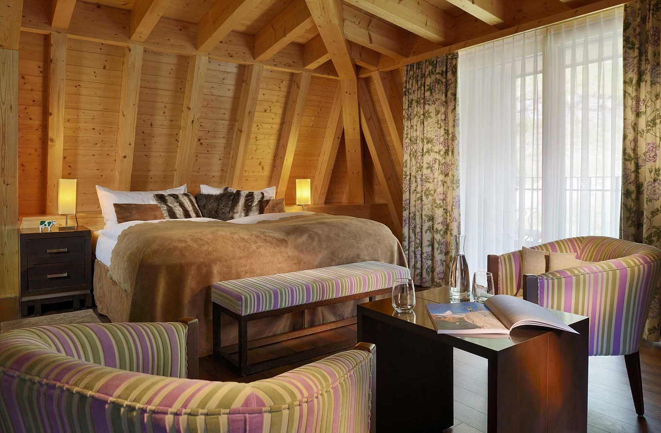 · Edleweiss Deluxe (35sqm) King/twin bedroom with sitting area, views of Rothorn and Mischabel mountains.