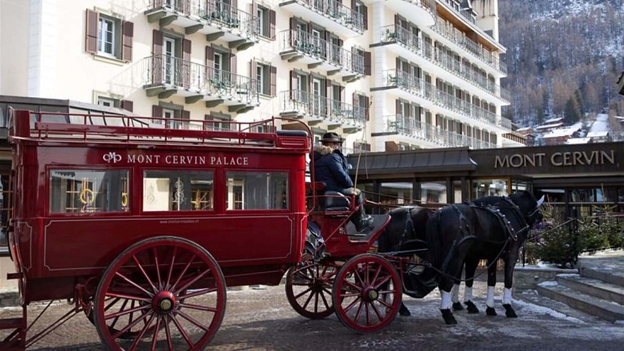 A member of “Leading Hotels of the World” and “Swiss Deluxe Hotels,” The Mont Cervin Palace has epitomized Swiss hospitality for over 150 years. Founded in 1852 and acquired by Alexander Seiler in 1867, the hotel remains family-owned, with descendants managing multiple Zermatt properties. Its 1994 expansion introduced the luxurious Residence, connected via an underground gallery. Open from early December to mid-April and mid-June to mid-September, the hotel blends timeless elegance with modern Alpine charm, featuring a striking southern façade, turreted roof, and the iconic red horse-drawn carriage awaiting guests at Zermatt’s train station.