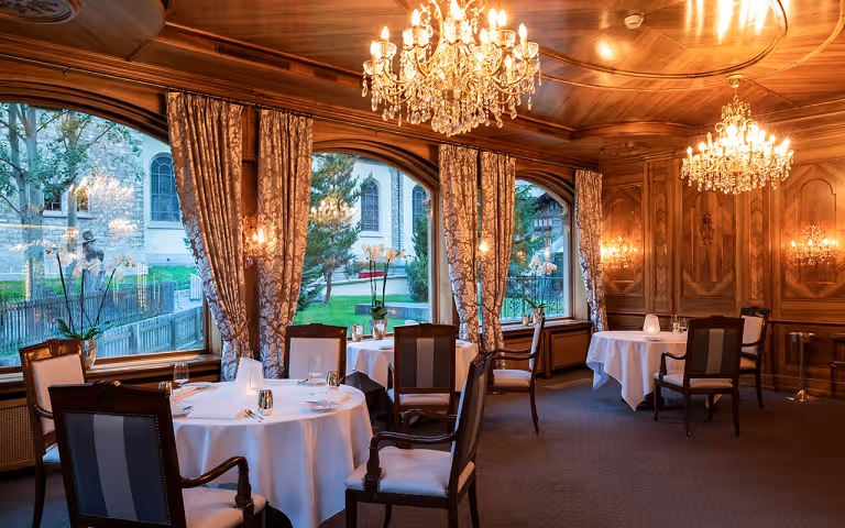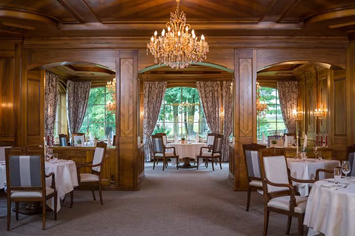 Brasserie Lusi: Sun-drenched terrace dining offering French classics and international dishes (13 GaultMillau points).