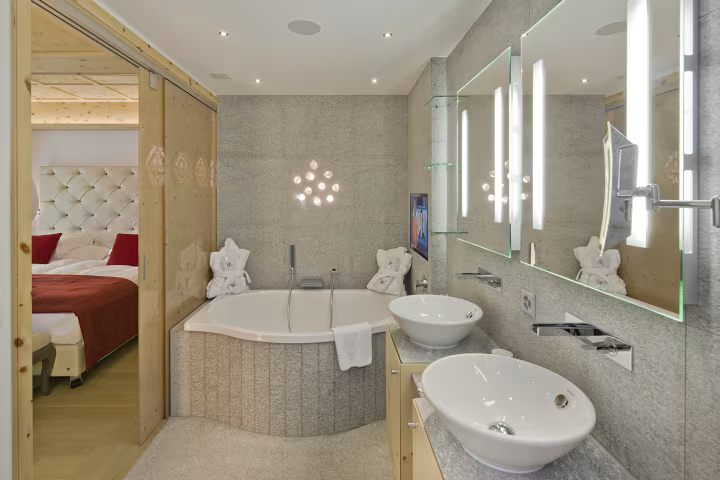 The hotel has a total of 78 rooms, of which 35 are suites. From single and double classic and deluxe rooms, to elegant junior suites and a variety of luxury suites. Some rooms also have their own fireplace and a Jacuzzi bath. Most rooms have a balcony with a view of the majestic Matterhorn.